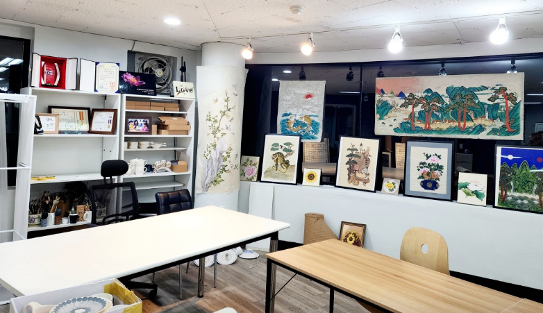 서울 종로구 북촌에 위치한 청연공방은 전통 한옥 내부에서 민화 도자기 수업을 진행하는 곳으로, 공간 자체가 고풍스럽고 고요한 분위기를 자랑합니다. 내부에는 다양한 민화 작품과 도자 예술품이 전시되어 있어 갤러리 같은 감상을 할 수 있으며, 수업 전부터 전통 미학에 흠뻑 빠질 수 있습니다.